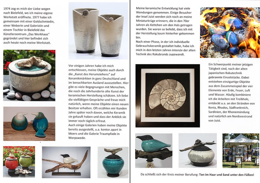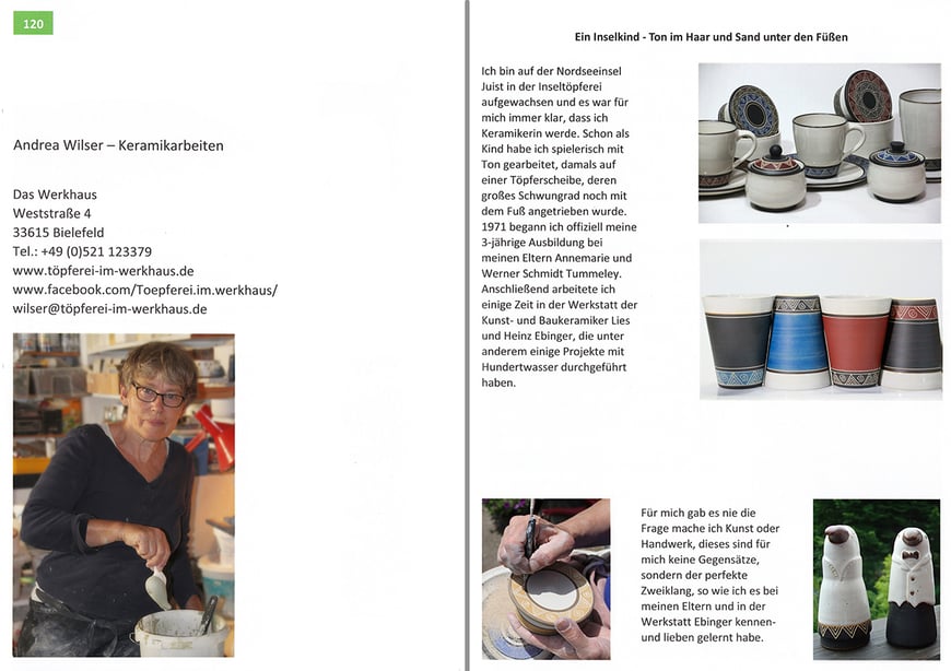 Das Töpferhandwerk habe ich in der Inseltöpferei auf Juist erlernt und mich dann 1976 mit der Töpferei im Werkhaus in Bielefeld selbständig gemacht.